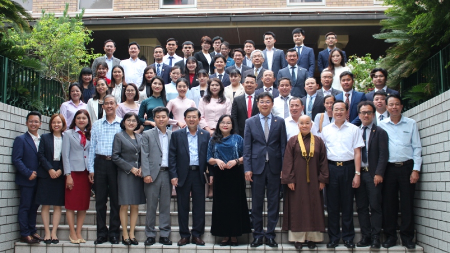 VOV.VN - Trong khuôn khổ chuyến công tác tại Nhật Bản, ngày 9/6, Đoàn công tác của Ủy ban Trung ương Mặt trận Tổ quốc (UBTW MTTQ) Việt Nam do Phó Chủ tịch Nguyễn Hữu Dũng làm trưởng đoàn đã có buổi gặp và làm việc với các hội đoàn người Việt Nam tại Nhật Bản.