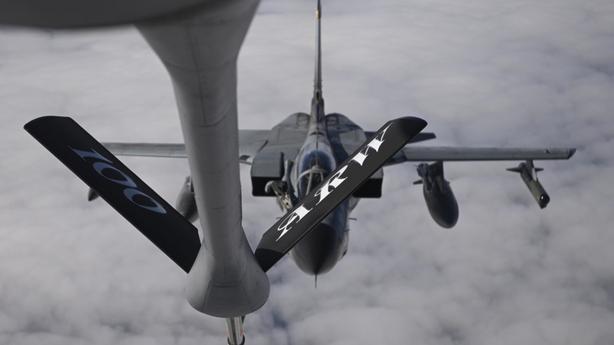 VOV.VN - “Thùng xăng bay” KC-135 của Không quân Mỹ mới đây đã thực hiện diễn tập tiếp nhiên liệu cho máy bay chiến đấu Tornado của Đức trên lãnh thổ Cộng hòa Séc trong khuôn khổ cuộc tập trận Ample Strike.