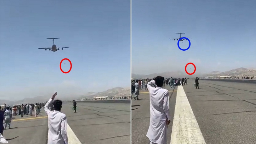 VOV.VN - Hàng nghìn người Afghanistan ồ ạt kéo đến sân bay ở thủ đô Kabul để tìm cách rời khỏi đất nước, trong đó có 3 người bám vào càng máy bay C-17, nhưng đã rơi xuống đất khi máy bay lấy độ cao.