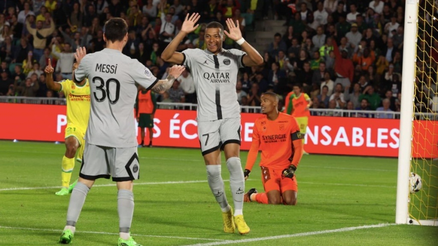 Messi và Mbappe phối hợp ghi bàn ăn ý, PSG thắng nhàn NantesVOV.VN - PSG giành chiến thắng nhàn nhã 3-0 trước Nantes trong ngày Lionel Messi liên tục kiến tạo để Kylian Mbappe ghi bàn.