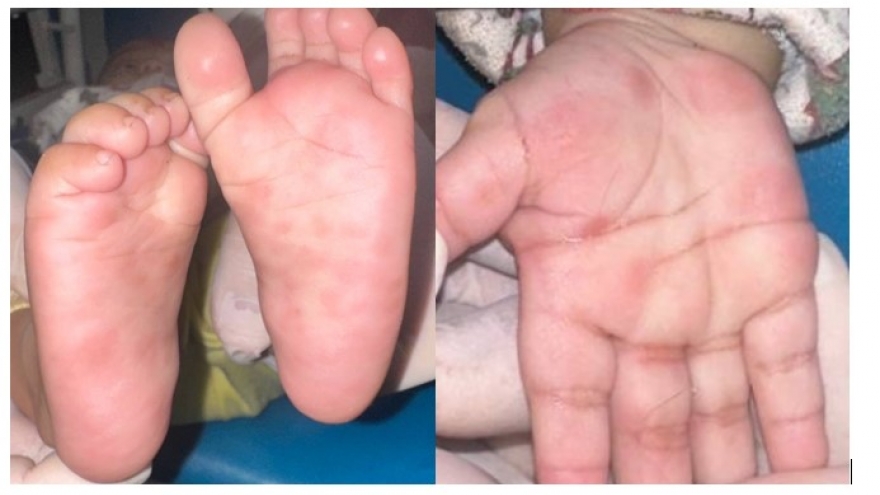 VOV.VN - Bệnh viện Da liễu Trung ương vừa tiếp nhận bệnh nhi (4 tháng tuổi) xuất hiện ban đỏ rải rác lòng bàn tay, bàn chân. Bác sĩ xác định bệnh nhân nhiễm giang mai bẩm sinh từ mẹ.