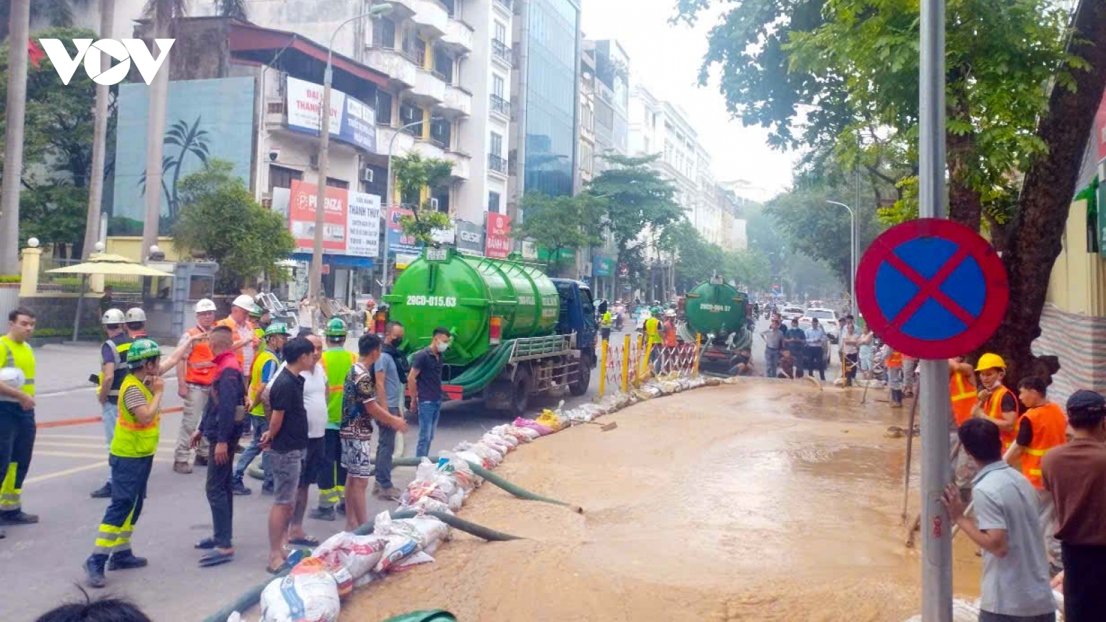 VOV.VN - Chính quyền địa phương cùng Ban Quản lý đường sắt đô thị Hà Nội (MRB) đang khẩn trương khắc phục sự cố phun trào bùn tại khu vực trước số nhà 25F phố Cát Linh (Đống Đa, Hà Nội).