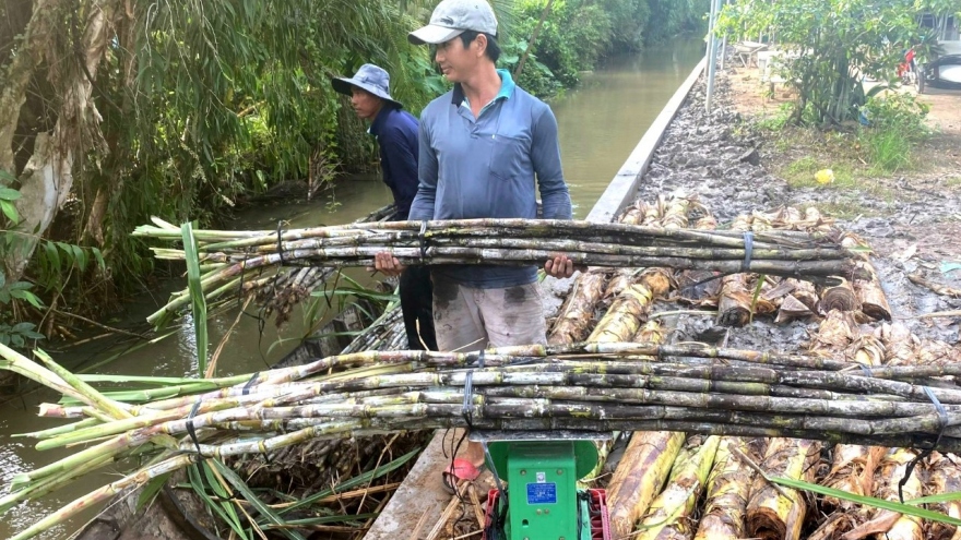 VOV.VN - Những ngày này, xuôi về huyện Phụng Hiệp, tỉnh Hậu Giang sẽ bắt gặp không khí thu hoạch mía bán chục nhộn nhịp tại nhiều cách đồng. Nông dân trồng mía bán chục ở đây vô cùng phấn khởi vì mía đạt năng suất và bán được giá.