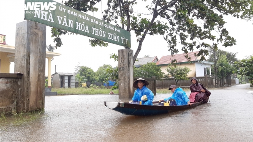 VOV.VN - Mưa lớn ở Thừa Thiên - Huế những ngày qua khiến nhà máy thuỷ điện buộc phải điều tiết nước gây lụt lội ở nhiều địa phương, nước tràn lên cả Quốc lộ 1A.