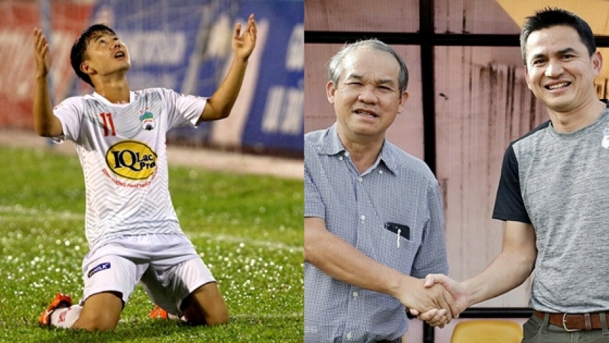 VOV.VN - Felipe Martins đưa SLNA vượt lên dẫn trước nhưng tấm thẻ đỏ của Bá Sang là bước ngoặt khiến trận đấu trên sân Pleiku đảo chiều. HAGL lội ngược dòng thắng 2-1 trong thế hơn người nhờ các pha làm bàn của Minh Vương và Văn Toàn.