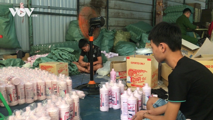 VOV.VN - Hàng nghìn thùng nước tẩy rửa giả của các thương hiệu phổ biến như: Javen, D-nee, Lion,... vừa bị các lực lượng chức năng phát hiện tại một cơ sở sản xuất tại Bình Dương