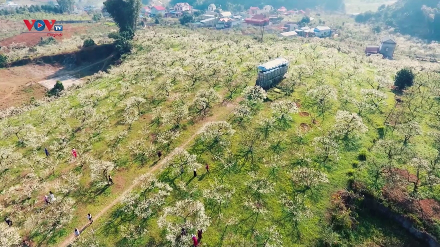 VOV.VN - Những ngày đầu năm, về với các bản làng tại Mộc Châu (Sơn La) du khách sẽ như lạc vào xứ sở thần tiên bởi màu hoa mận phủ trắng khắp cả núi đồi, khắp thung lũng tạo ra vẻ đẹp kỳ ảo.