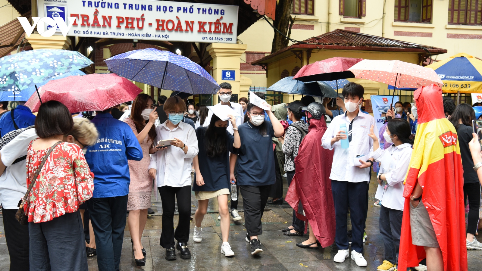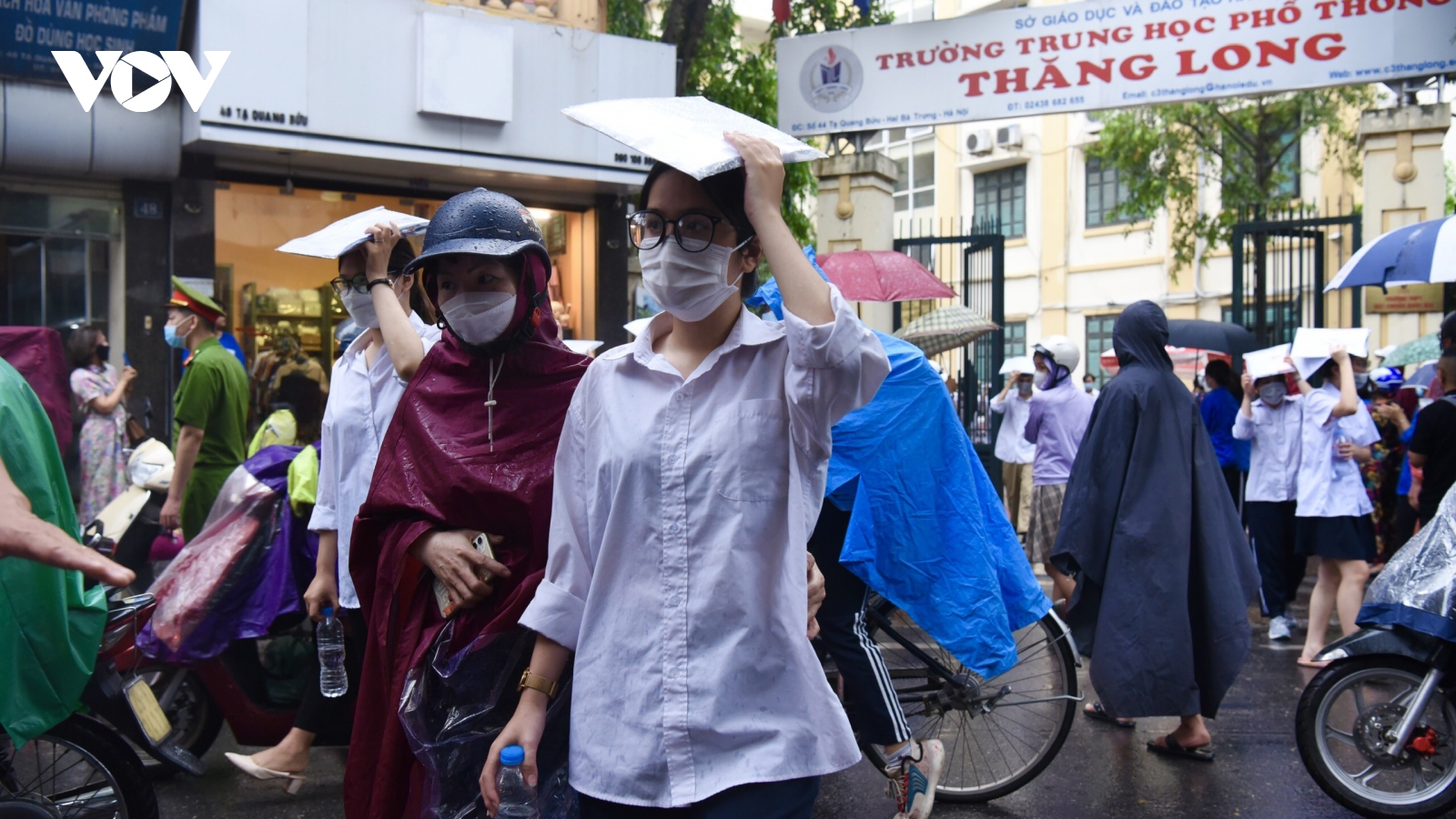 VOV.VN - Chiều 7/7, cơn mưa lớn đã trút xuống tại nhiều khu vực trên địa bàn Hà Nội vào đúng thời điểm các thí sinh kết thúc thời gian làm bài thi môn Toán của kỳ thi tốt nghiệp THPT 2022.