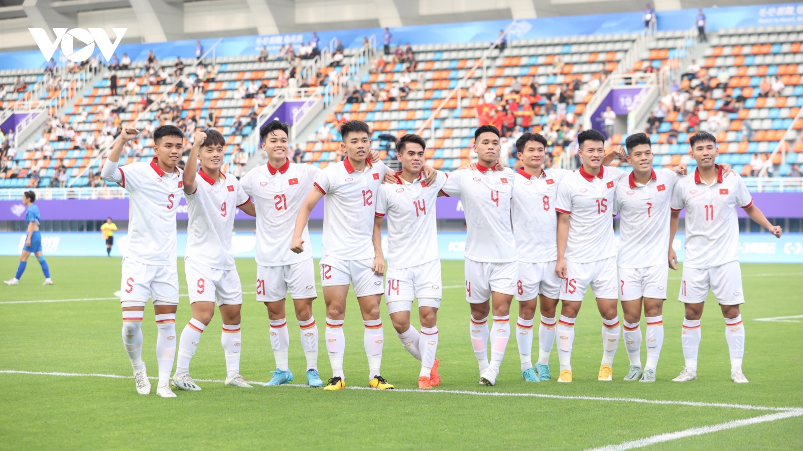 VOV.VN - Olympic Việt Nam đã giành thắng lợi với tỷ số 4-2 trước Olympic Mông Cổ ở trận ra quân bảng B môn bóng đá nam ASIAD 19 diễn ra trên sân vận động Linping Sports Center ở Hàng Châu, Trung Quốc.