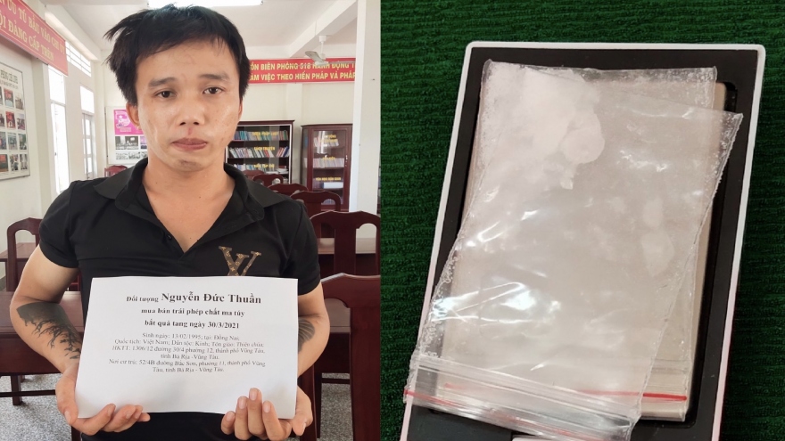 VOV.VN - Bộ Chỉ huy Bộ đội Biên phòng tỉnh Bà Rịa – Vũng Tàu cho biết, vừa phát hiện, bắt quả tang một đối tượng đang thực hiện hành vi mua bán trái phép chất ma túy.Thu giữ gồm 2 gói ma túy tổng hợp dạng đá nặng khoảng 3 gram và 300 ngàn đồng.