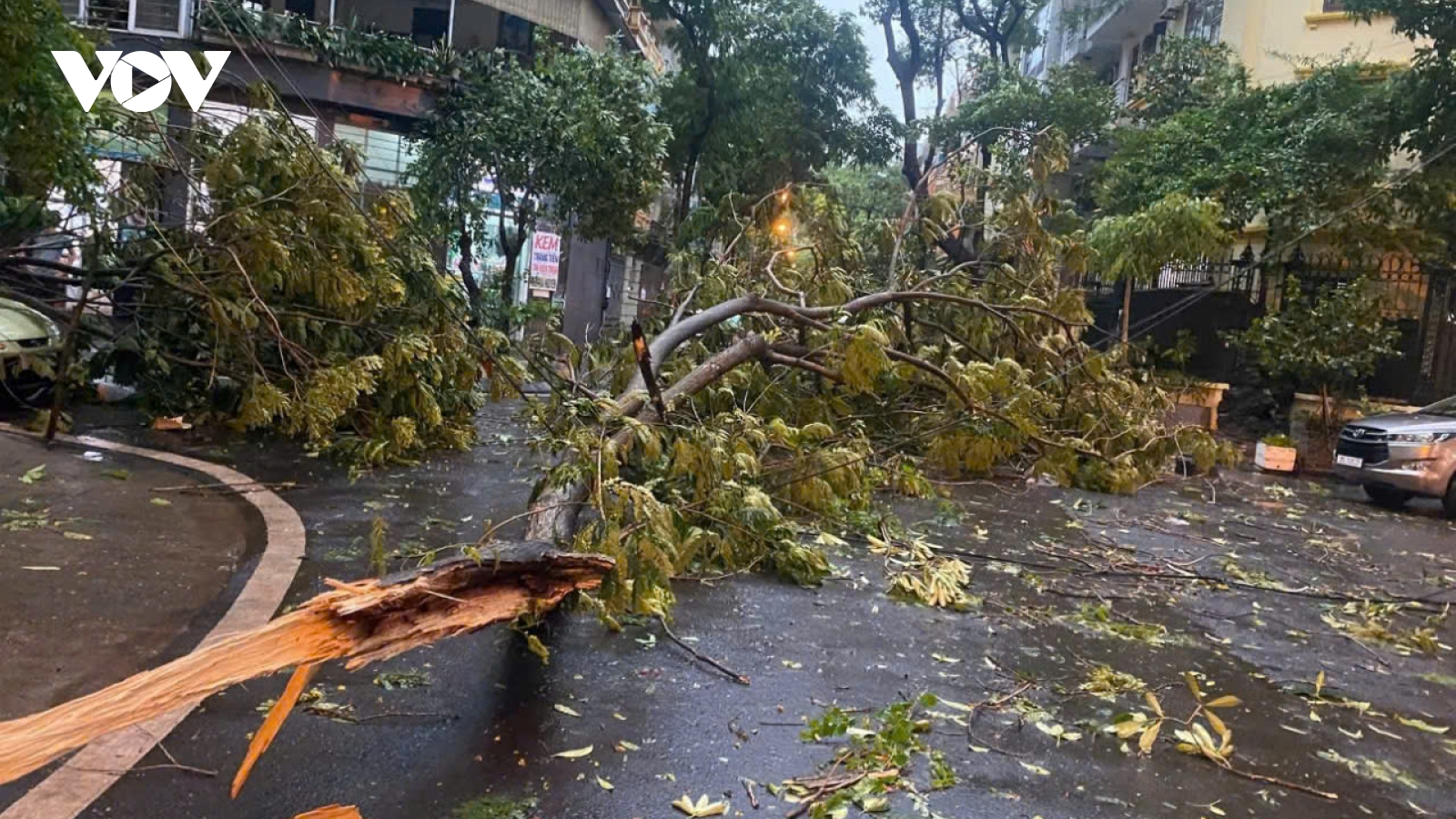 VOV.VN - Trận mưa dông lớn kéo dài khoảng nửa giờ đồng hồ vào chiều 19/7 tại một số khu vực của thành phố Hà Nội khiến nhiều cây xanh bị đổ gãy, hàng loạt tuyến đường bị ngập.