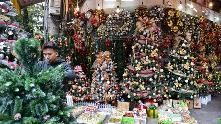 Thời điểm này, thị trường các loại cây thông trang trí Giáng sinh đã trở nên nhộn nhịp. Năm nay, bên cạnh cây thông Noel làm bằng nhựa, cây thông tươi cũng được ưa chuộng.