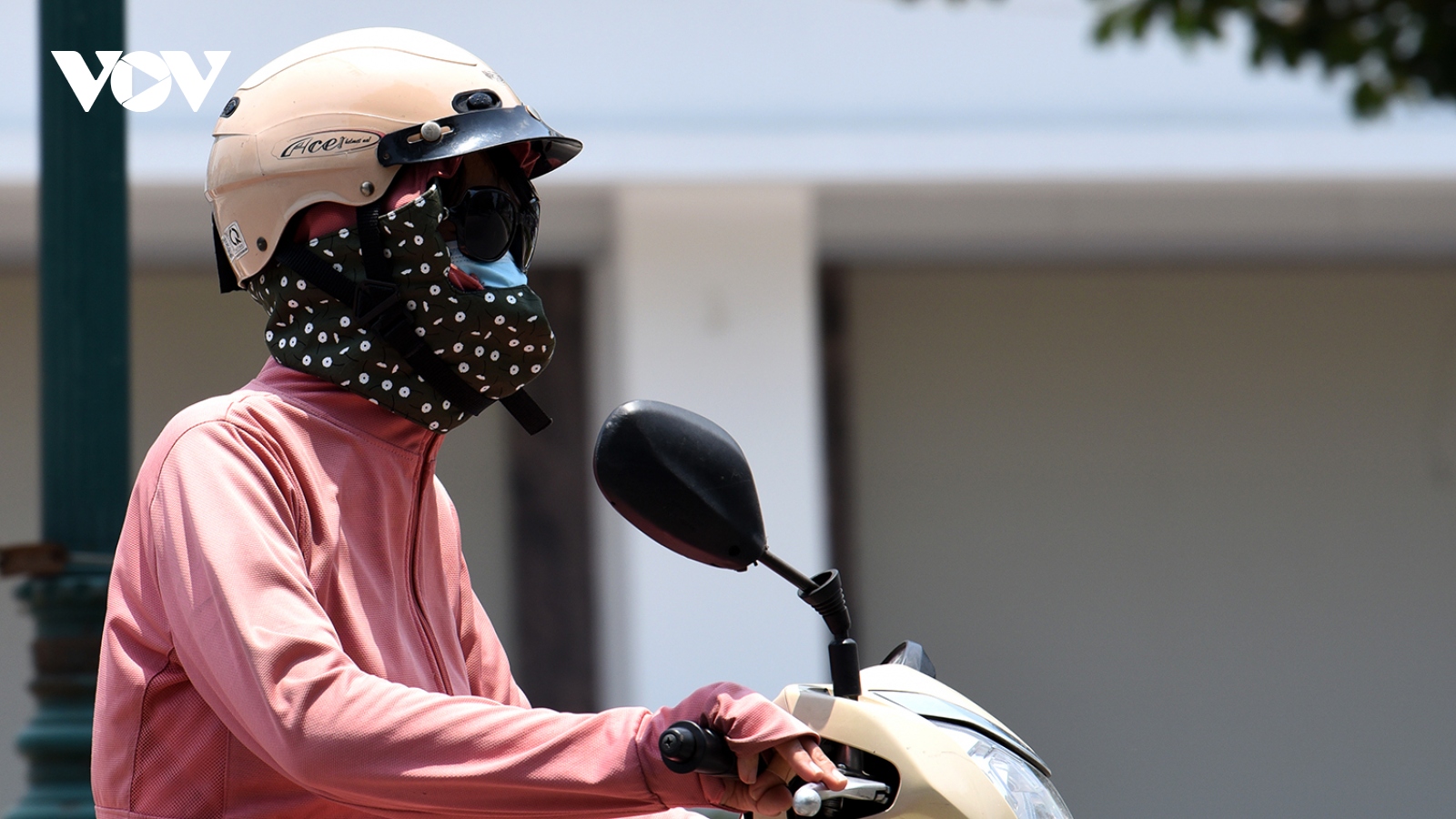 VOV.VN - Những người bắt buộc phải tham gia giao thông trong những ngày Hà Nội nắng nóng đặc biệt gay gắt thường phải trang bị quần áo bảo hộ kín mít để chống chọi với cái nắng như đổ lửa.