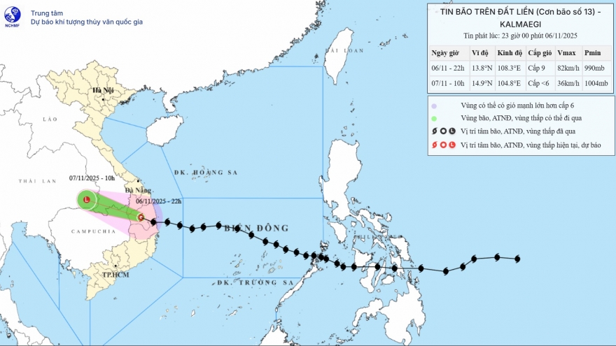 VOV.VN - Theo Trung tâm Dự báo khí tượng thủy văn Quốc gia, tối 6/11, bão số 13 đã đi vào đất liền các tỉnh Gia Lai - Đắk Lắk với sức gió mạnh cấp 9, giật cấp 11, gây mưa to đến rất to và gió giật mạnh trên diện rộng từ Quảng Ngãi đến Đắk Lắk.