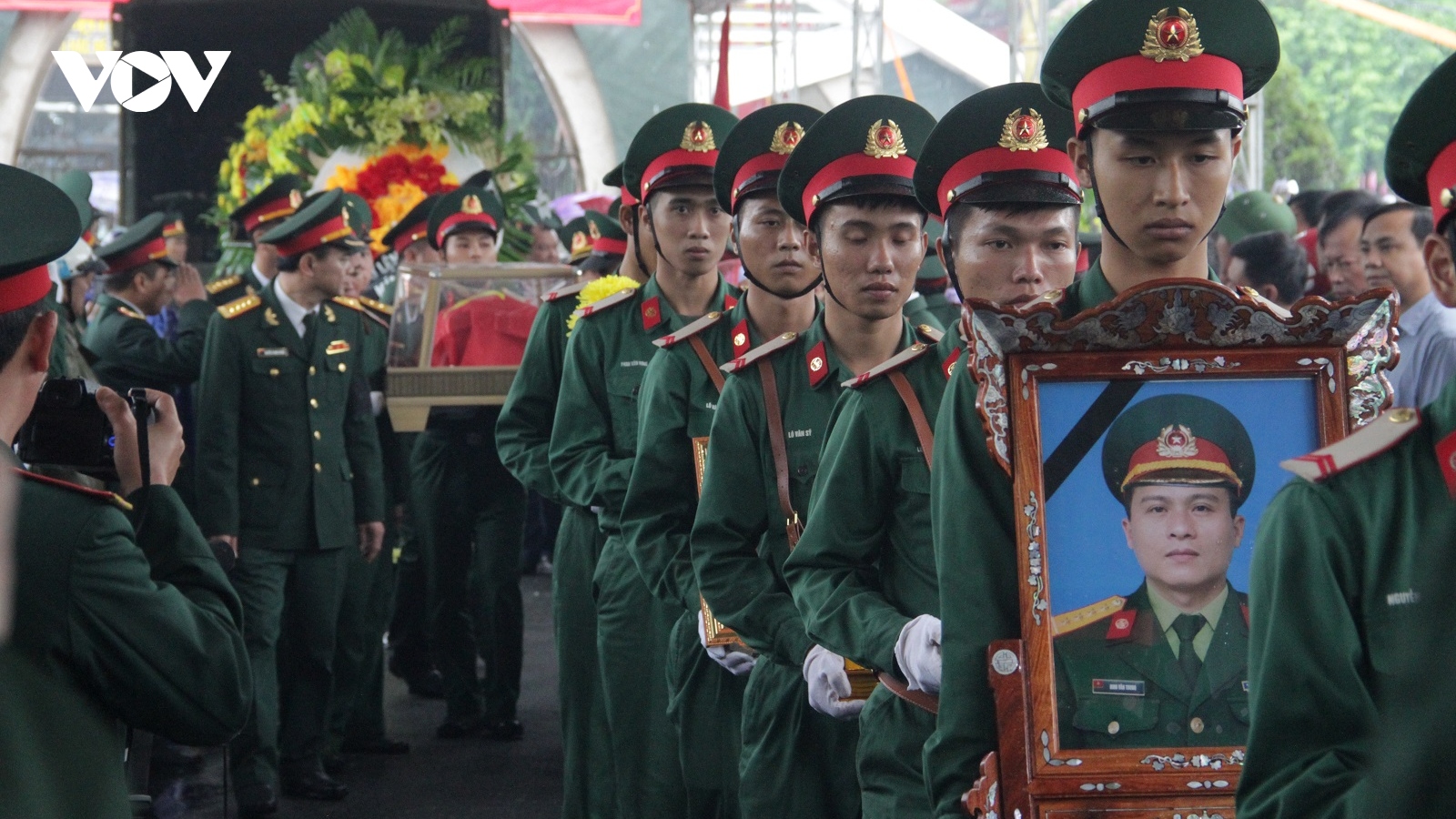 VOV.VN - Dù trời mưa không ngớt, nhiều người dân vẫn đội mưa đến từ sớm chờ ở nghĩa trang liệt sỹ TP Vinh để dâng hương tiễn biệt 4 liệt sỹ về nơi an nghỉ cuối cùng.