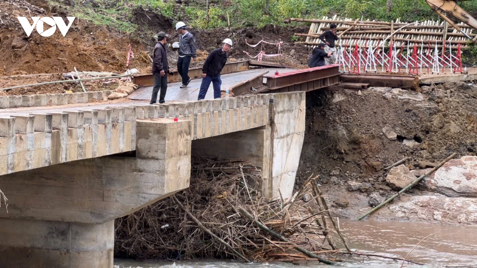 VOV.VN - Mưa lũ lớn vừa qua cuốn trôi cầu bê tông bắc qua suối Nước Bao, xã Sơn Hà, tỉnh Quảng Ngãi khiến hơn 1.200 người dân bị chia cắt. Sở Xây dựng tỉnh Quảng Ngãi đã chỉ đạo các đơn vị khẩn trương xây dựng cầu tạm bằng dầm thép để vận chuyển lương thực hỗ trợ người dân hai thôn Mang Nà và Nước Bao.