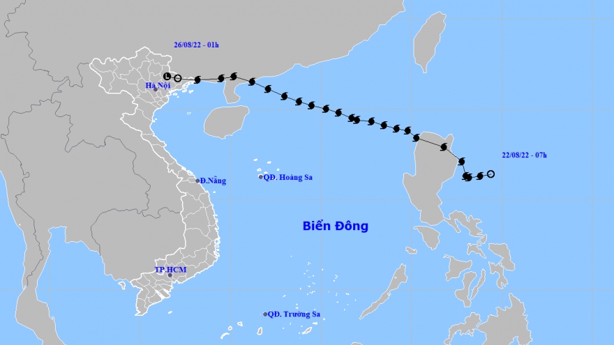 VOV.VN - Dự báo đến 07 giờ ngày 25/8, vị trí tâm bão ở khoảng 21,1 độ Vĩ Bắc; 112,5 độ Kinh Đông, cách Móng Cái (Quảng Ninh) khoảng 500km về phía Đông Đông Nam. Sức gió mạnh nhất vùng gần tâm bão mạnh cấp 11-12 (103-133km/giờ), giật cấp 15.