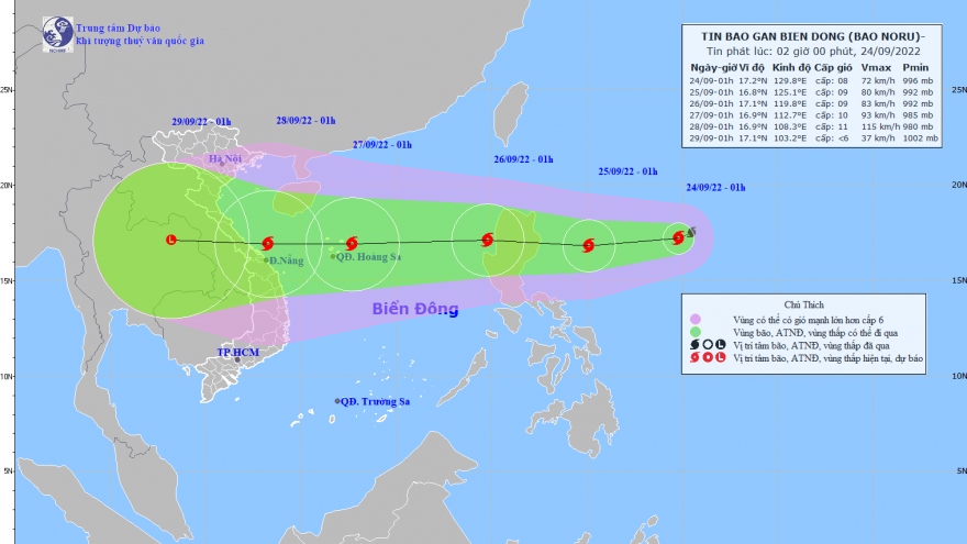 VOV.VN - Khoảng tối và đêm ngày 25/9, bão Noru (bão số 4) sẽ đi vào vùng biển phía Đông khu vực Bắc Biển Đông gây gió mạnh, sóng lớn, mưa to cho khu vực Bắc Bộ và Bắc Trung Bộ.