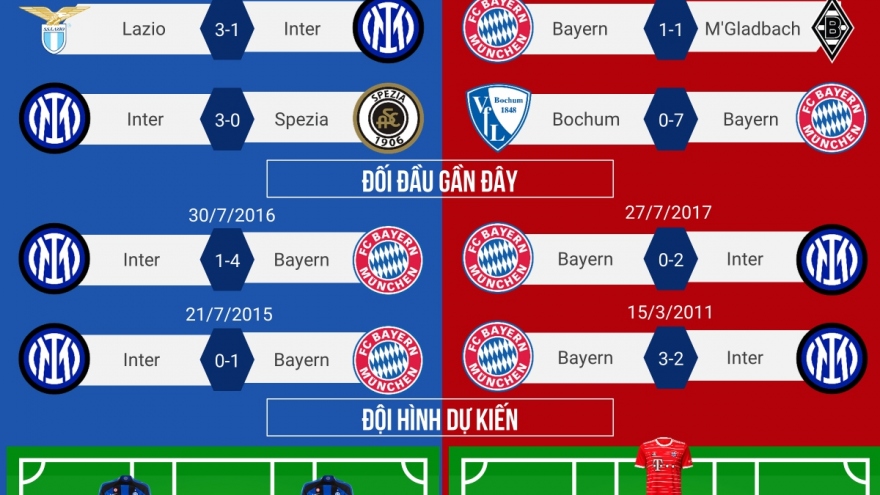 VOV.VN - Dự đoán tỷ số, đội hình xuất phát trận đấu giữa Inter Milan và Bayern Munich trong khuôn khổ bảng C Champions League 2022/2023 diễn ra lúc 02h00 ngày 8/9 theo giờ Việt Nam.