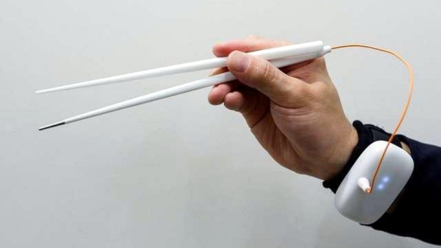 VOV.VN - Người cần chế độ ăn giảm muối chỉ cần sử dụng đôi đũa kết nối này sẽ tạo ra sự kích thích vị giác, cảm nhận món ăn ít muối vẫn trở nên đậm đà, hấp dẫn.