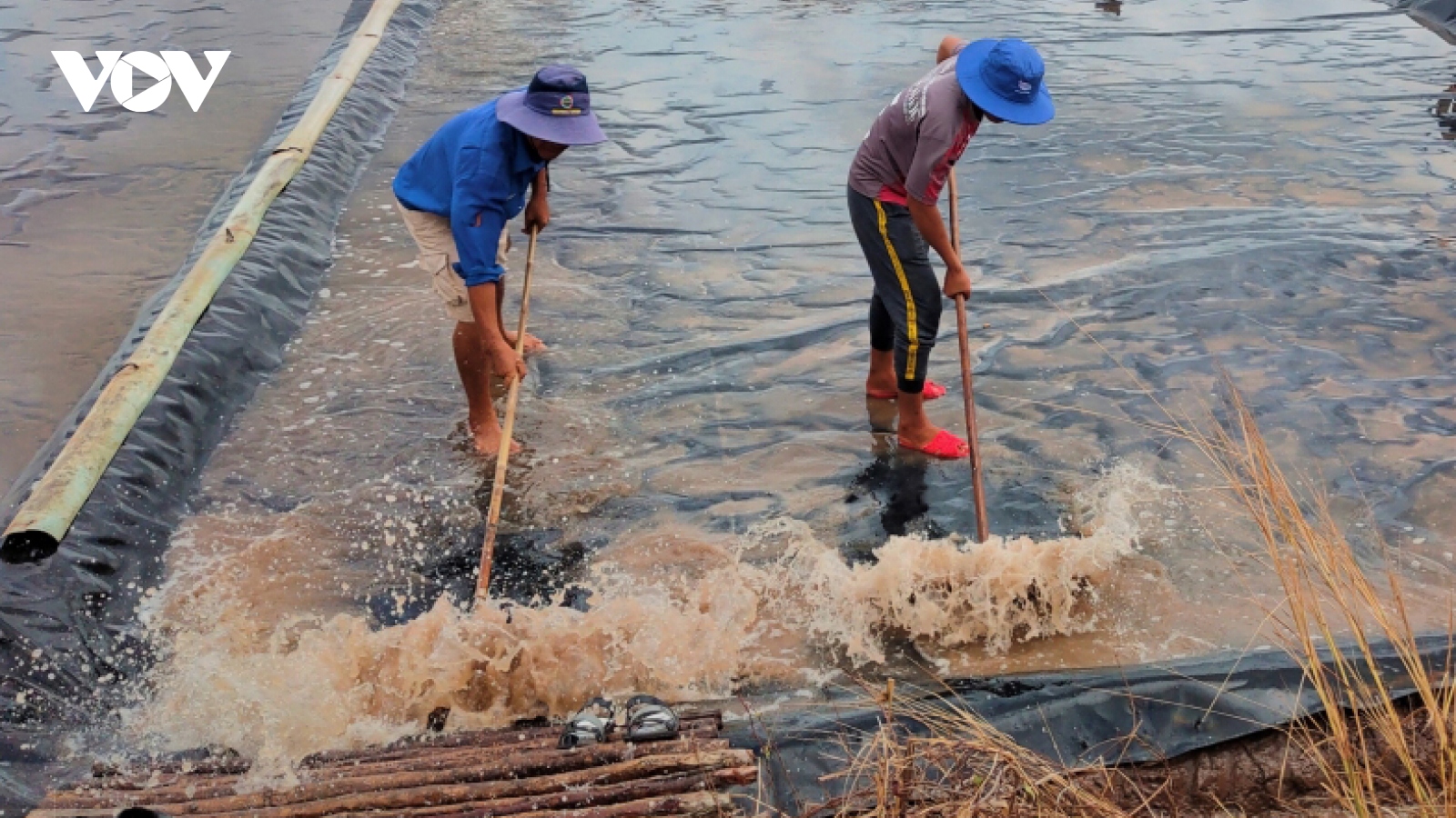 VOV.VN - Hiện nay, tận dụng thời tiết nắng nóng, người dân vùng ven biển của tỉnh Bến Tre tích cực sản xuất muối để có nguồn thu nhập mùa khô hạn. Tuy điều kiện thời tiết bất lợi, sản xuất khó khăn, nhưng diêm dân vẫn có lãi.