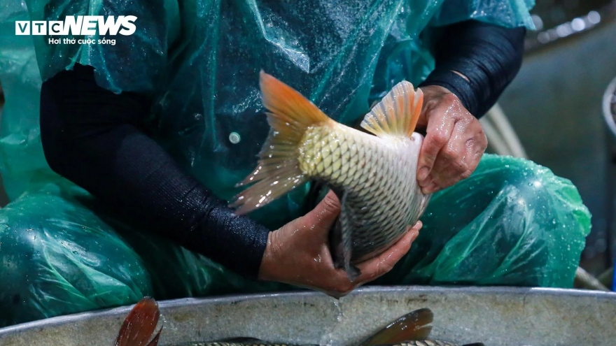 VOV.VN - Trong thời tiết Hà Nội rét hại dưới 10 độ C, các tiểu thương ở chợ cá Yên Sở (Hoàng Mai, Hà Nội) vẫn phải ngâm đôi tay đỏ ửng trong nước lạnh, khiêng đá suốt đêm.