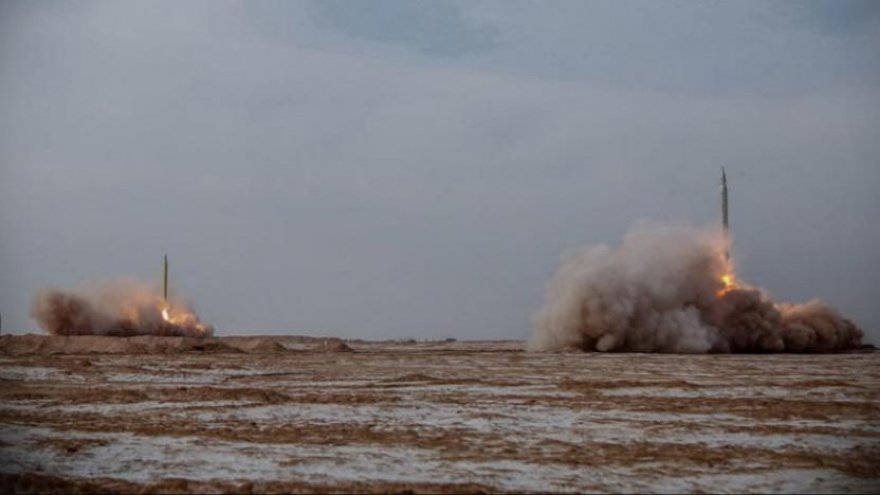 VOV.VN - Trong cuộc tập trận quy mô lớn, Lực lượng vệ binh cách mạng Iran (IRGC) đã phóng tên lửa đạn đạo, tiêu diệt thành công mục tiêu di động trên biển cách xa 1.800km.