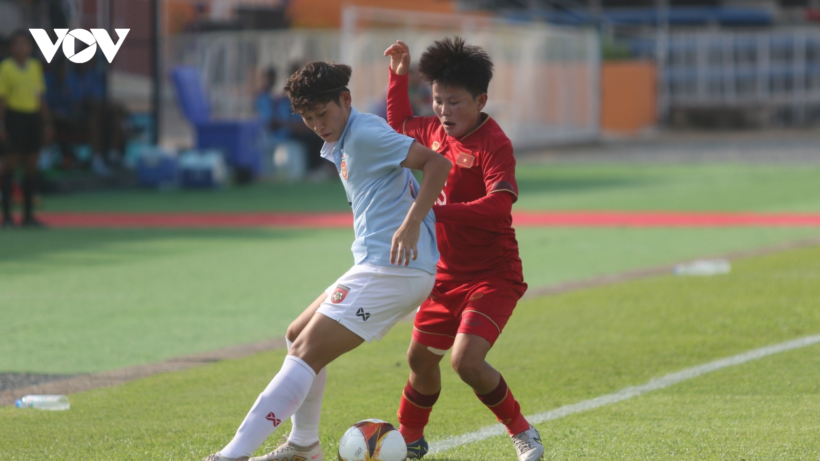 VOV.VN - Trung vệ của ĐT nữ Việt Nam - Trần Thị Thúy Nga đã phải đi cấp cứu giữa trận đấu chung kết SEA Games 32 do bị chấn thương sau tình huống va chạm với cầu thủ Myanmar.