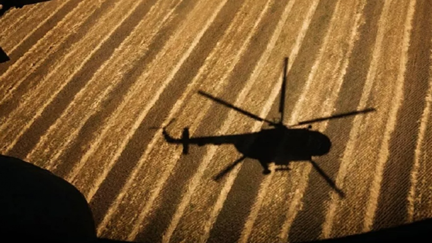 VOV.VN - Video cho thấy chiếc trực thăng bị bắn bốc cháy dữ dội trên bầu trời như một quả cầu lửa, sau đó lao xuống đất, nổ tung và để lại đám khói đen dày đặc