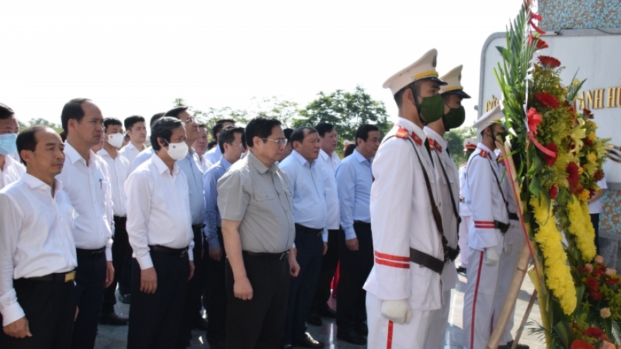 VOV.VN - Sáng nay (27/3), Thủ tướng Chính phủ Phạm Minh Chính cùng đoàn công tác của Trung ương và lãnh đạo tỉnh Quảng Nam đã đến đặt vòng hoa, dâng hương tại Nghĩa trang liệt sỹ tỉnh Quảng Nam và Tượng đài Mẹ Việt Nam Anh hùng.