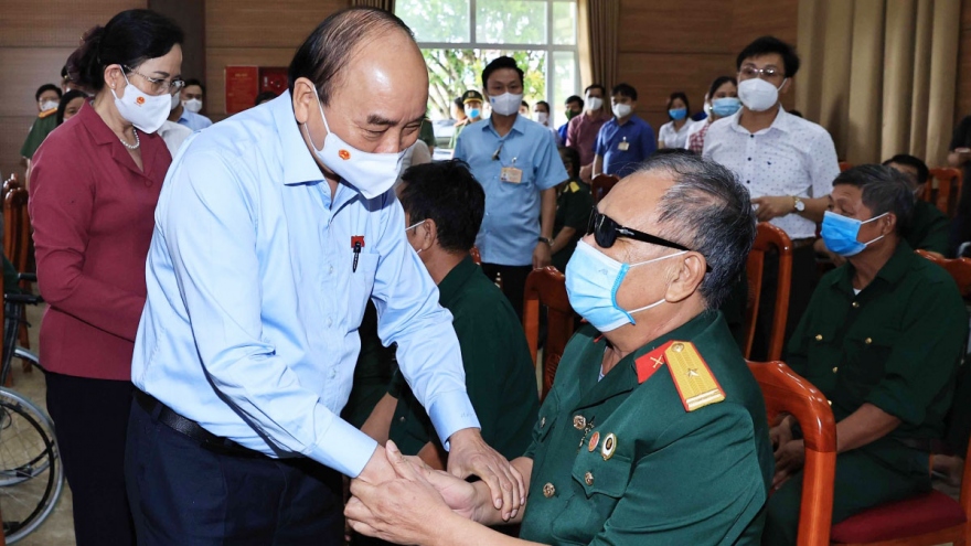 VOV.VN - Chủ tịch nước tin tưởng các thương binh, bệnh binh, gia đình liệt sĩ và người có công với nước phát huy truyền thống cách mạng, nỗ lực vượt khó, chung sức, đồng lòng cùng toàn Đảng, toàn dân và toàn quân chiến thắng đại dịch.
