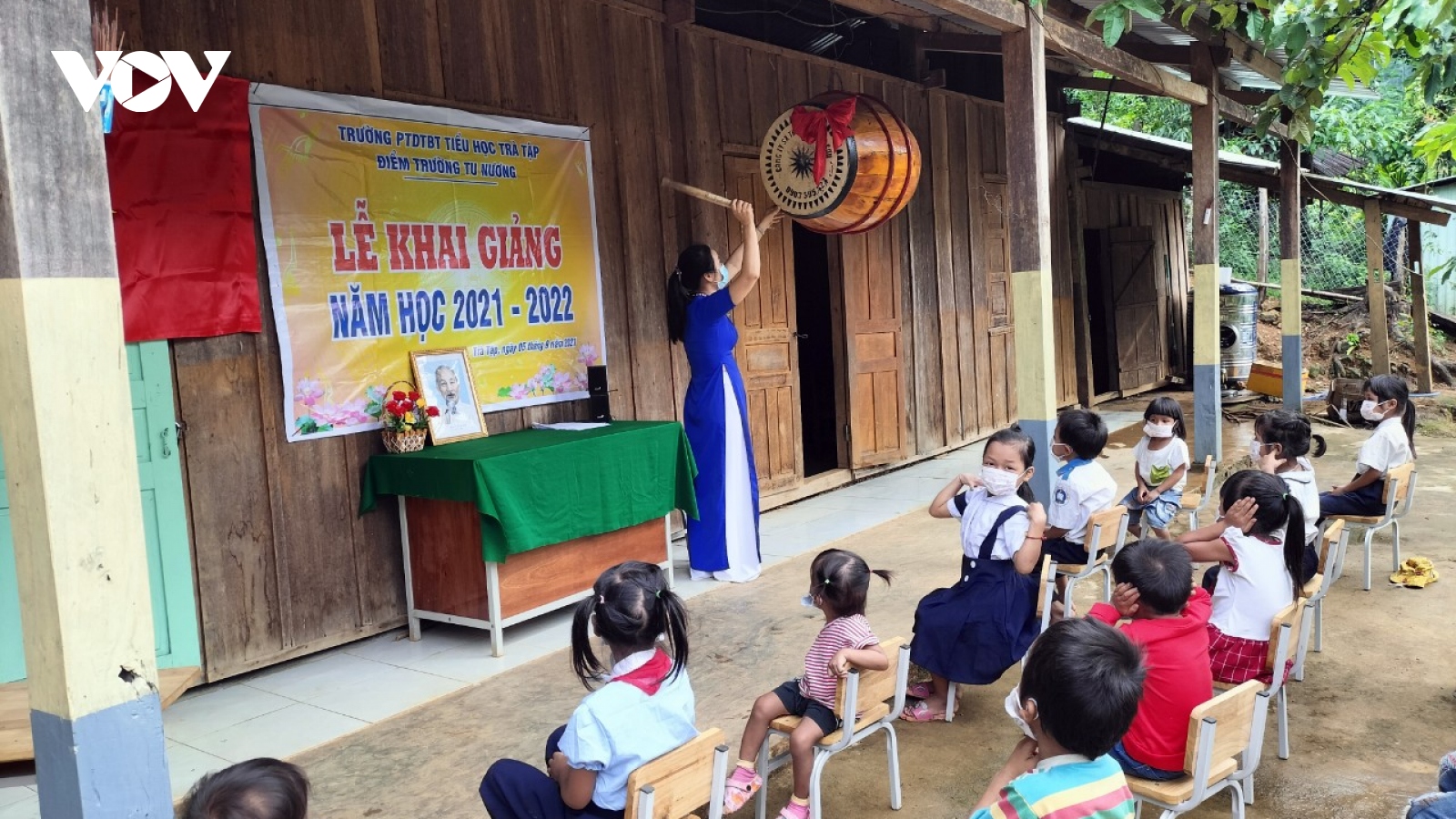VOV.VN - Lễ khai giảng năm học mới tại điểm trường Tắk Pổ, xã Trà Tập, huyện Nam Trà My, tỉnh Quảng Nam năm nay thật đặc biệt, vì các em học sinh phải học ở điểm tạm do trường đang được xây dựng.
