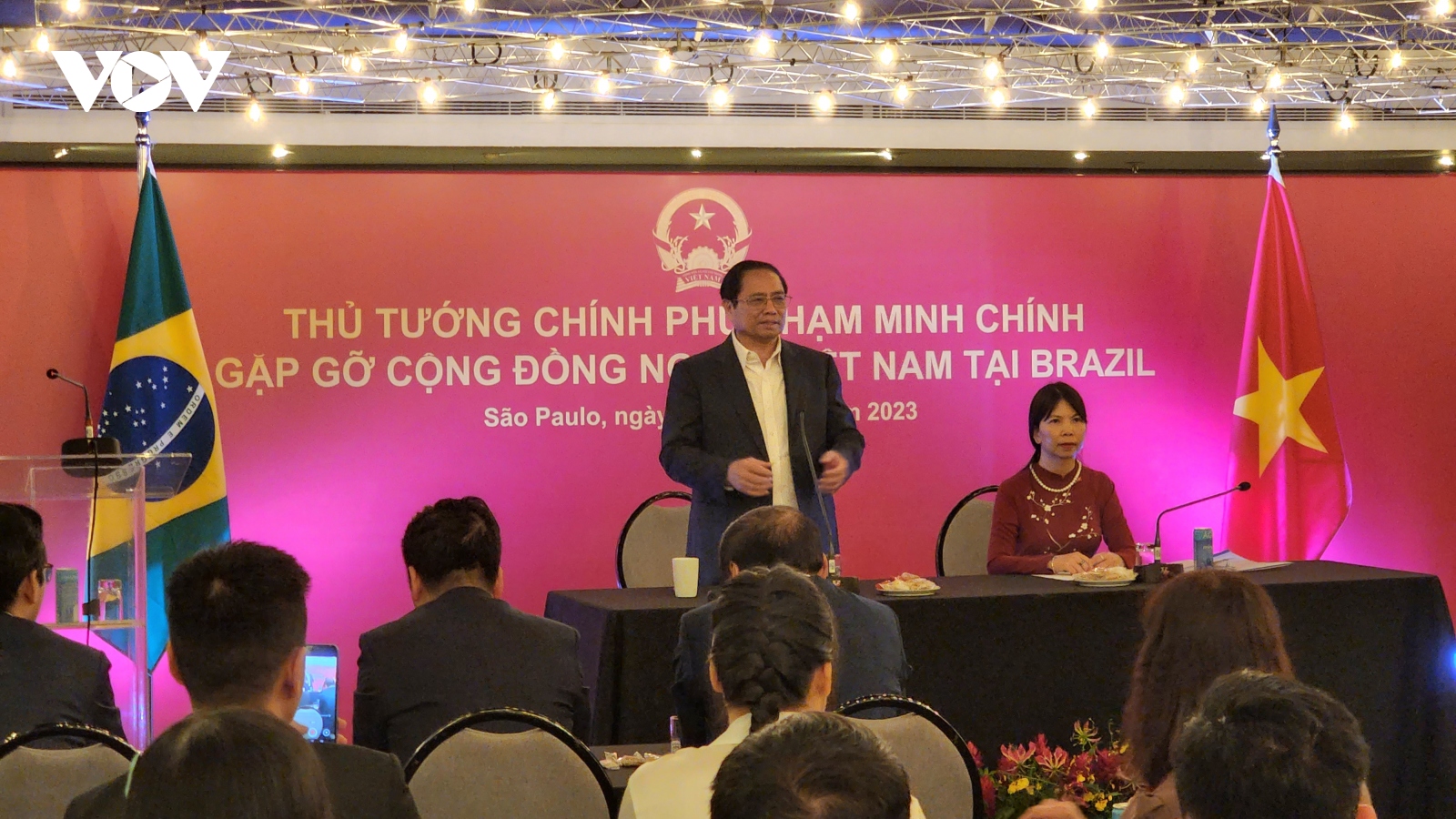 VOV.VN - Nhân chuyến thăm chính thức Cộng hòa Liên bang Brazil, tối 23/9 (giờ địa phương), tại São Paulo, Thủ tướng Chính phủ Phạm Minh Chính đã có buổi gặp gỡ cộng đồng người Việt Nam tại Brazil và các nước Nam Mỹ lân cận.