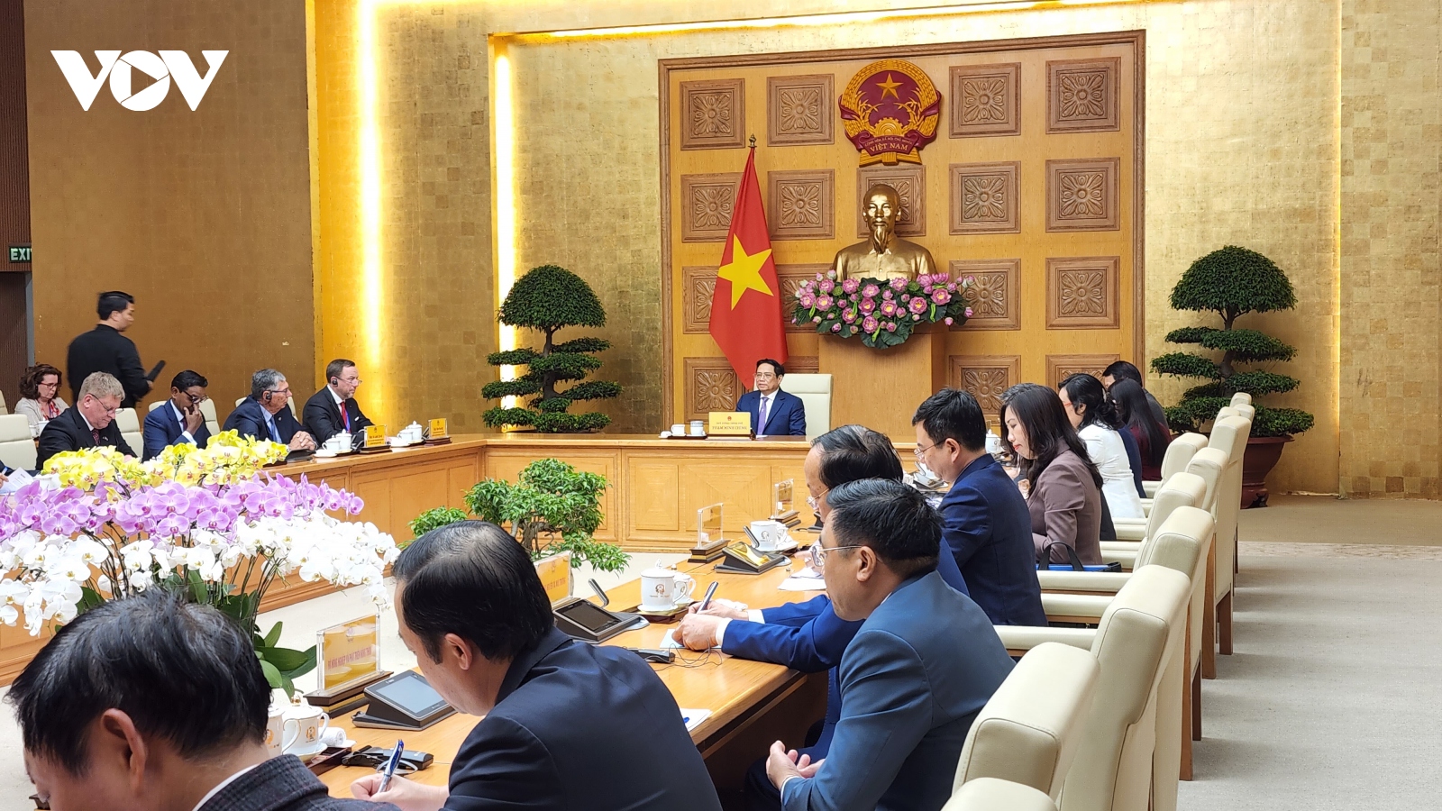 VOV.VN - Chiều 14/2, Thủ tướng Phạm Minh Chính đã tiếp đoàn Hội đồng doanh nghiệp EU - ASEAN và Hiệp hội doanh nghiệp châu Âu tại Việt Nam (EuroCham) để trao đổi các biện pháp thúc đẩy quan hệ kinh tế, thương mại và đầu tư giữa Việt Nam và EU.