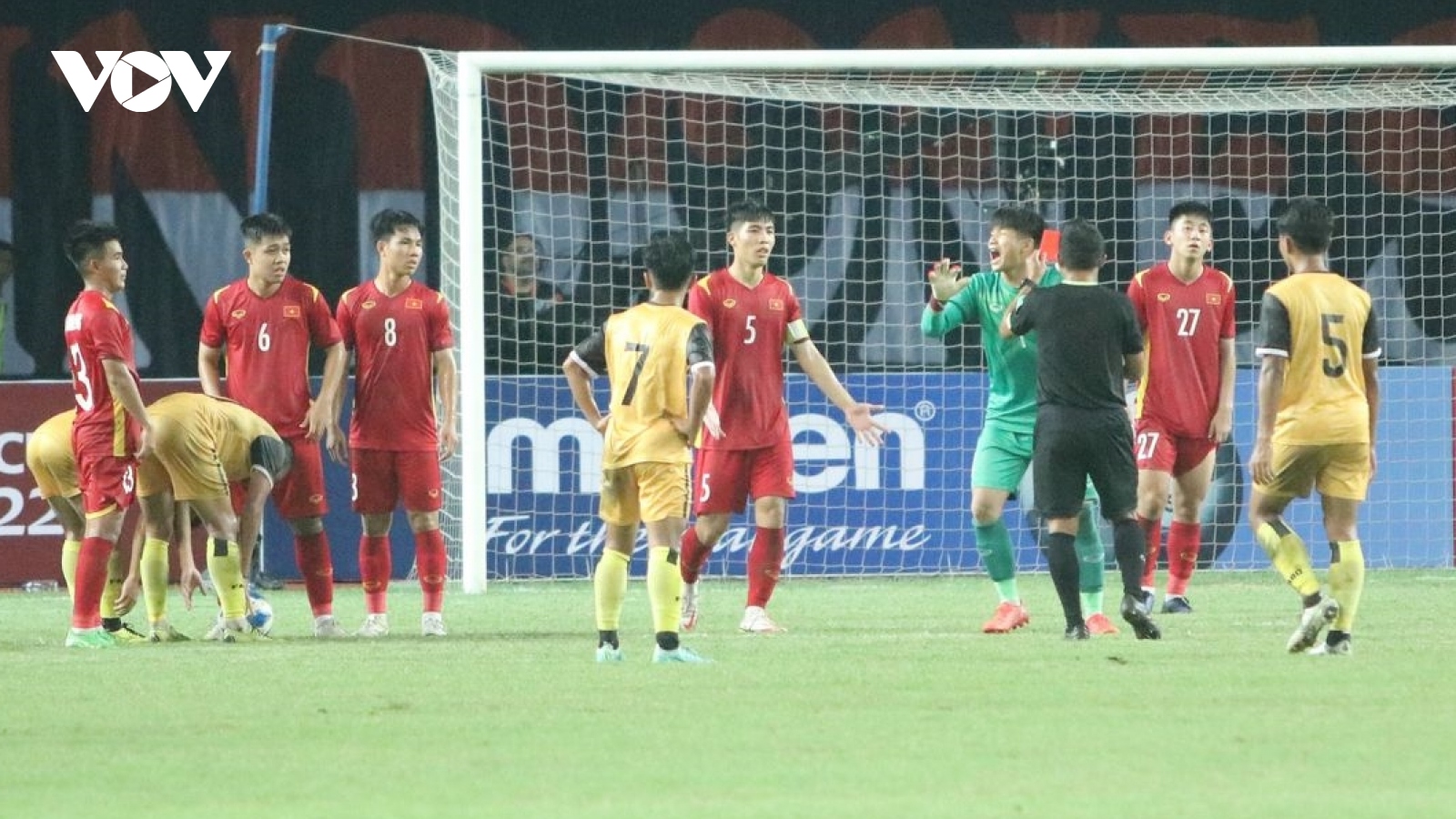 VOV.VN - HLV Đinh Thế Nam cho biết mình tôn trọng quyết định của trọng tài khi được hỏi về tấm thẻ đỏ trực tiếp của thủ môn Hồ Tùng Hân ở trận U19 Việt Nam thắng U19 Brunei 4-0.