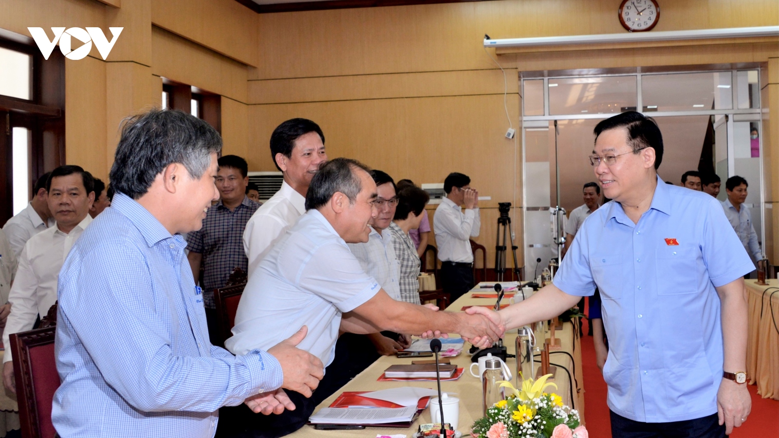 VOV.VN - Tiếp tục chuyến công tác tại các tỉnh Nam Trung Bộ, chiều 26/7, Chủ tịch Quốc hội Vương Đình Huệ và đoàn công tác đã làm việc với Ban Thường vụ tỉnh ủy Quảng Ngãi.