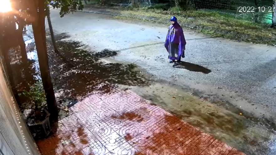 VOV.VN - Camera đã ghi lại cảnh đối tượng mặc áo mưa, đội mũ bảo hiểm đến trước căn nhà gia đình anh T. Sau khi quan sát, đối tượng ném nhiều túi chất bẩn vào phía trong.