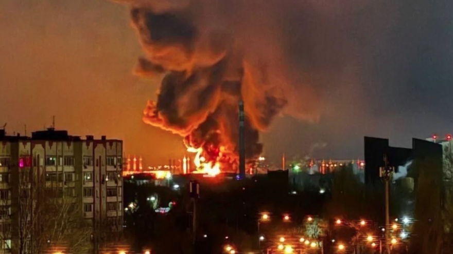 VOV.VN - Các máy bay không người lái của Ukraine đã tấn công sâu vào trong lãnh thổ Nga, nhắm đến một kho chứa dầu phục vụ một sân bay quân sự ở thành phố Engels, cách biên giới 643km, quân đội Ukraine cho hay ngày 8/1.