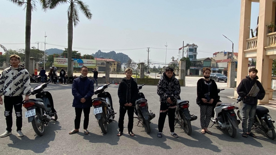 VOV.VN - Công an huyện Gia Viễn (tỉnh Ninh Bình) mới xử lý 32 quái xế chưa đủ tuổi điều khiển xe mô tô, có hộ khẩu thường trú tại TP Hà Nội tụ tập điều khiển xe không đội mũ bảo hiểm, phóng nhanh, vượt ẩu, lạng lách, đánh võng, nẹt pô...làm náo loạn tại Thị trấn Me.