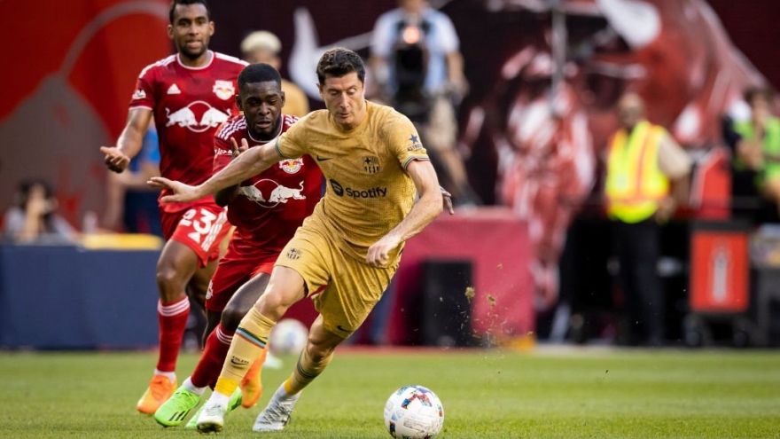 VOV.VN - Lewandowski bỏ lỡ hàng loạt cơ hội trong trận Barca thắng New York Red Bull 2-0 và vẫn chưa thể có bàn thắng ra mắt đội bóng mới sau khi chuyển tới từ Bayern Munich.