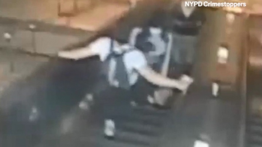 VOV.VN - Cảnh sát New York (Mỹ) đang truy tìm 1 gã thanh niên thô bạo tung cước vào ngực 1 phụ nữ khi ở trên cầu thang cuốn của ga tàu điện ngầm. Nạn nhân ngã lăn xuống cuối cầu thang và bị bầm dập lưng, tay chân, đầu gối, đùi, mắt cá chân... Camera an ninh đã ghi lại hành động bạo lực này.