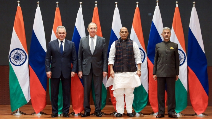 VOV.VN - Đối thoại 2+2 cấp Bộ trưởng Ngoại giao và Quốc phòng giữa Ấn Độ và Nga ngày 6/12 diễn ra tại thủ đô New Delhi, Ấn Độ. Tại đối thoại, hai bên thảo luận về một loạt các vấn đề chính trị và quốc phòng cùng quan tâm.