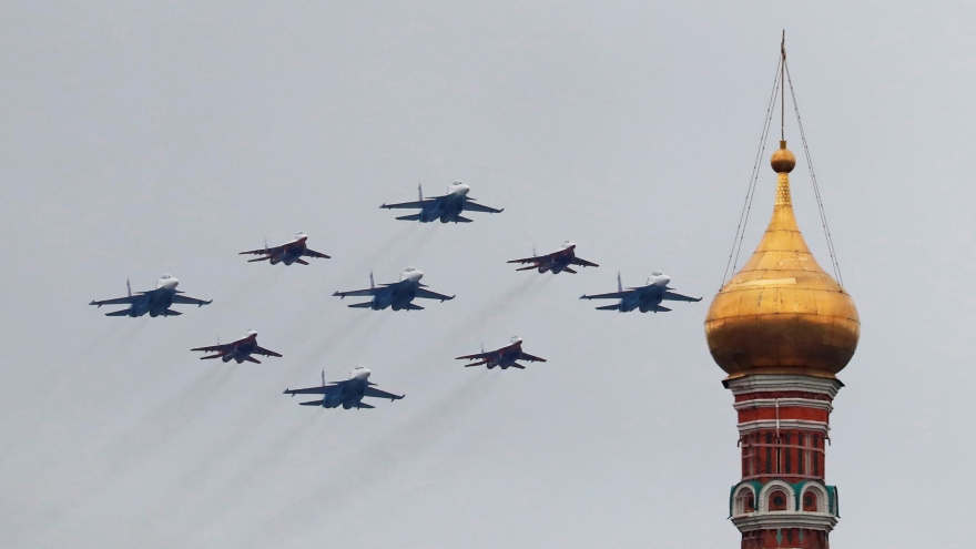 Mãn nhãn màn biểu diễn trên không tại Lễ duyệt binh Ngày Chiến thắng ở Quảng trường Đỏ