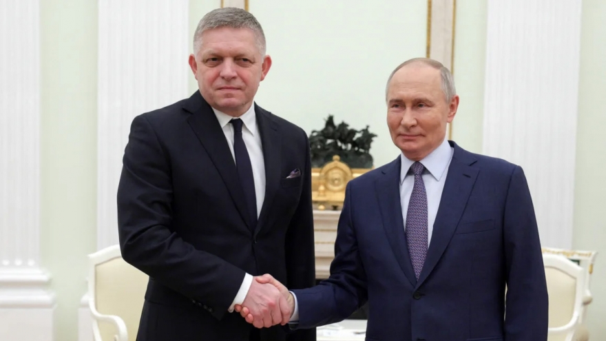 VOV.VN - Thủ tướng Slovakia Robert Fico ngày 22/12 đã gặp Tổng thống Nga Vladimir Putin trong chuyến thăm bất ngờ tới Điện Kremlin. Đây là chuyến thăm hiến hoi của một nhà lãnh đạo Liên minh châu Âu đến Nga kể từ khi cuộc xung đột tại Ukraine nổ ra hồi tháng 2/2022.