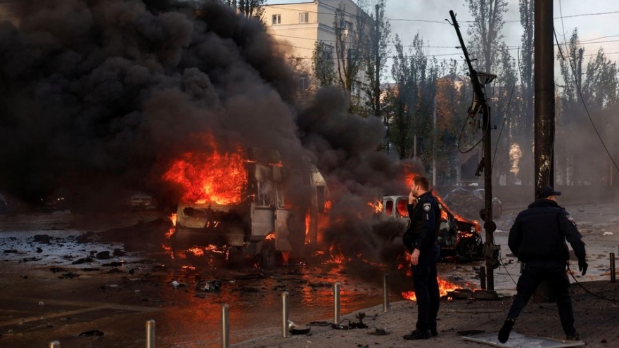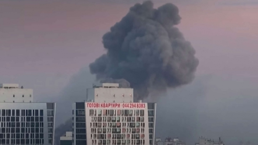 VOV.VN - Hàng loạt tên lửa trút xuống không chỉ thủ đô Kiev mà còn cả nhiều thành phố khác của Ukraine. Riêng Kiev lần đầu tiên bị không kích dữ dội trở lại tính từ hồi đầu “chiến dịch quân sự đặc biệt” của Nga.