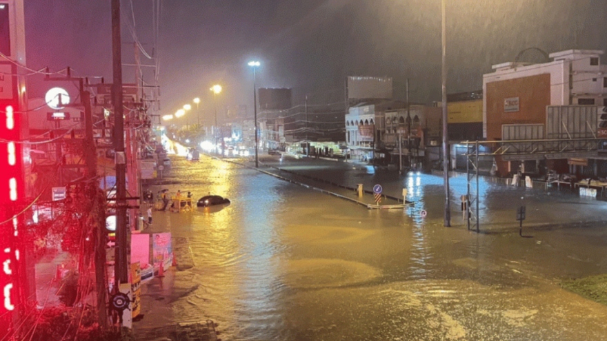 VOV.VN - Mưa lớn vào rạng sáng 10/10 đã khiến nhiều khu dân cư và đường phố bị ngập nặng, trong khi dòng nước chảy siết rút ra biển đã làm xói mòn một số bãi biển ở Pattaya, thành phố du lịch thuộc tỉnh Chon Buri, miền Đông Thái Lan.