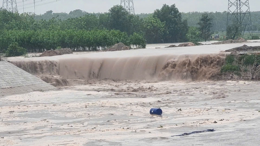 VOV.VN - Nước sông Cầu dâng cao ở mức báo động 2, khiến hàng trăm hộ dân ở các xã Hợp Thịnh, Xuân Cẩm, Mai Đình (huyện Hiệp Hòa, tỉnh Bắc Giang) bị ngập sâu trong biển nước.