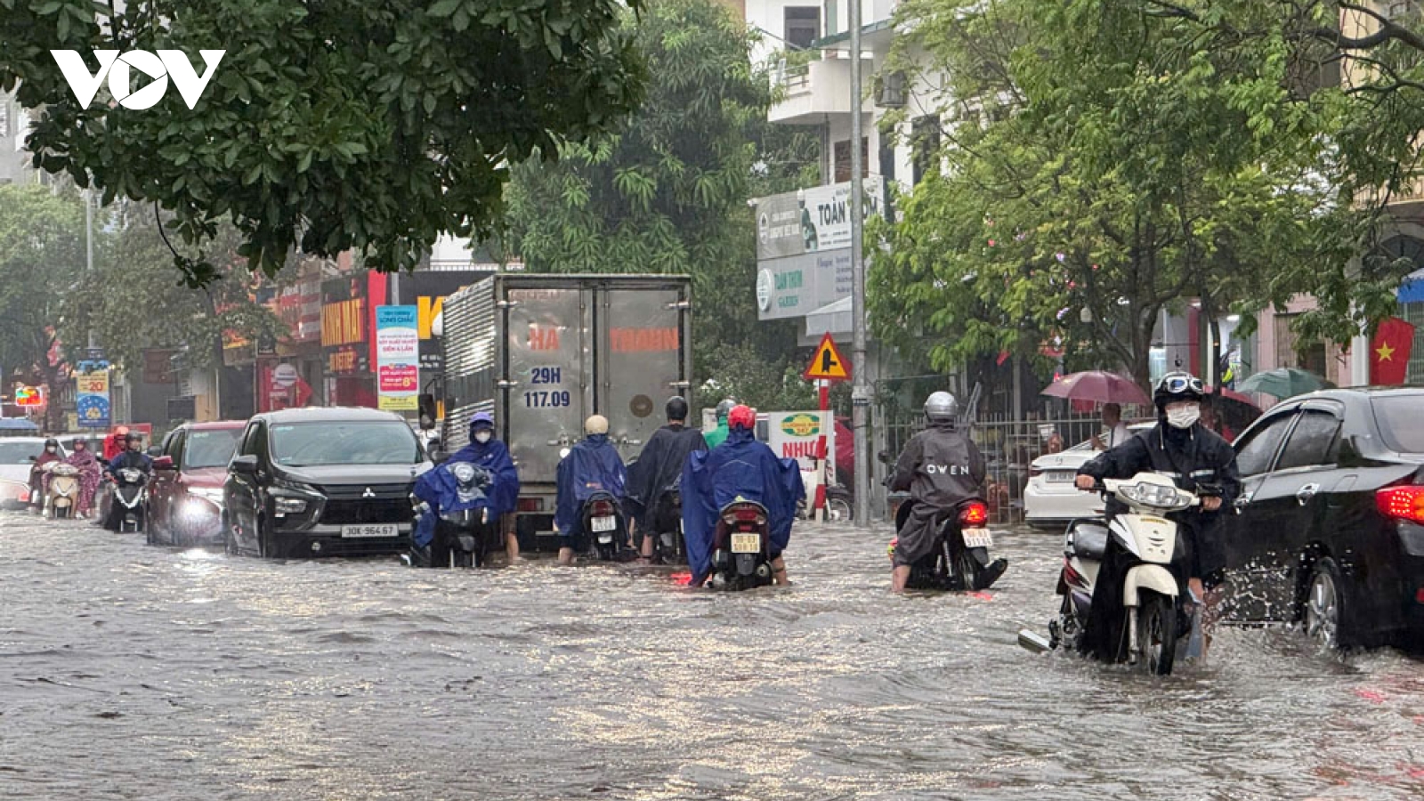 VOV.VN - Chiều 16/5, trận mưa lớn đã làm ngập nhiều tuyến đường tại TP Bắc Giang khiến người và phương tiện gặp khó khăn khi di chuyển, tại một số nơi có cảnh báo lũ quét, sạt lở đất do mưa lũ.