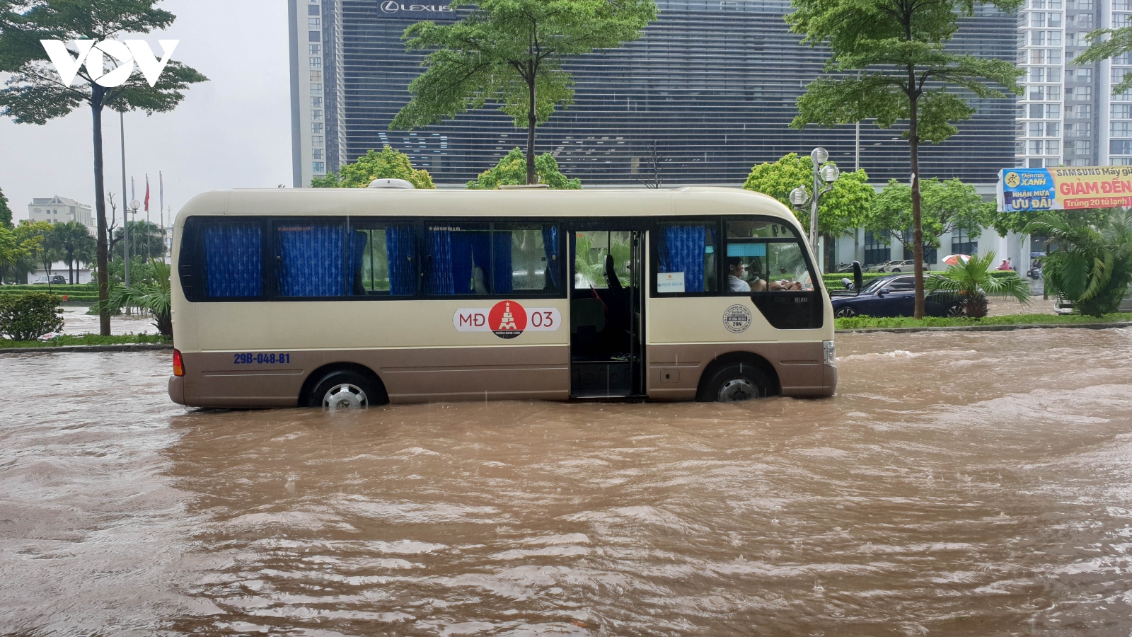 VOV.VN - Mưa lớn ở Hà Nội từ đêm đến sáng 12/8 khiến cho nhiều tuyến đường ngập sâu, nhất là khu vực quanh tòa nhà Keangnam và chợ Nhà Xanh khiến nhiều ô tô bị chết máy.