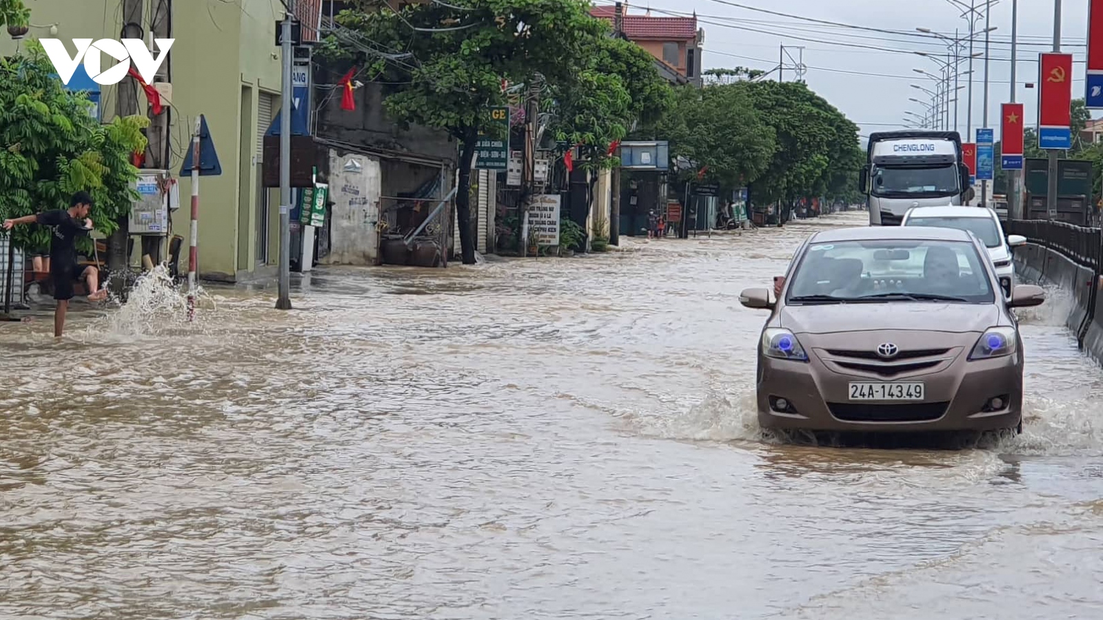 VOV.VN - Sáng nay (11/10), tại tỉnh Phú Yên trời tiếp tục mưa to, có nơi mưa rất to, nhiều tuyến đường trên địa bàn thành phố Tuy Hòa ngập sâu trong nước.